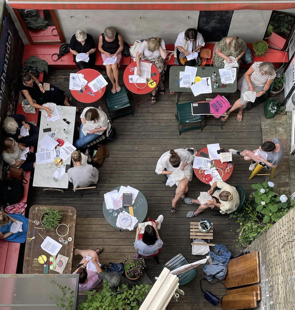 Vi satser på, at vejret er godt, og at vi kan sidde i den hemmelige gårdhave i Thiemers Magasin.
