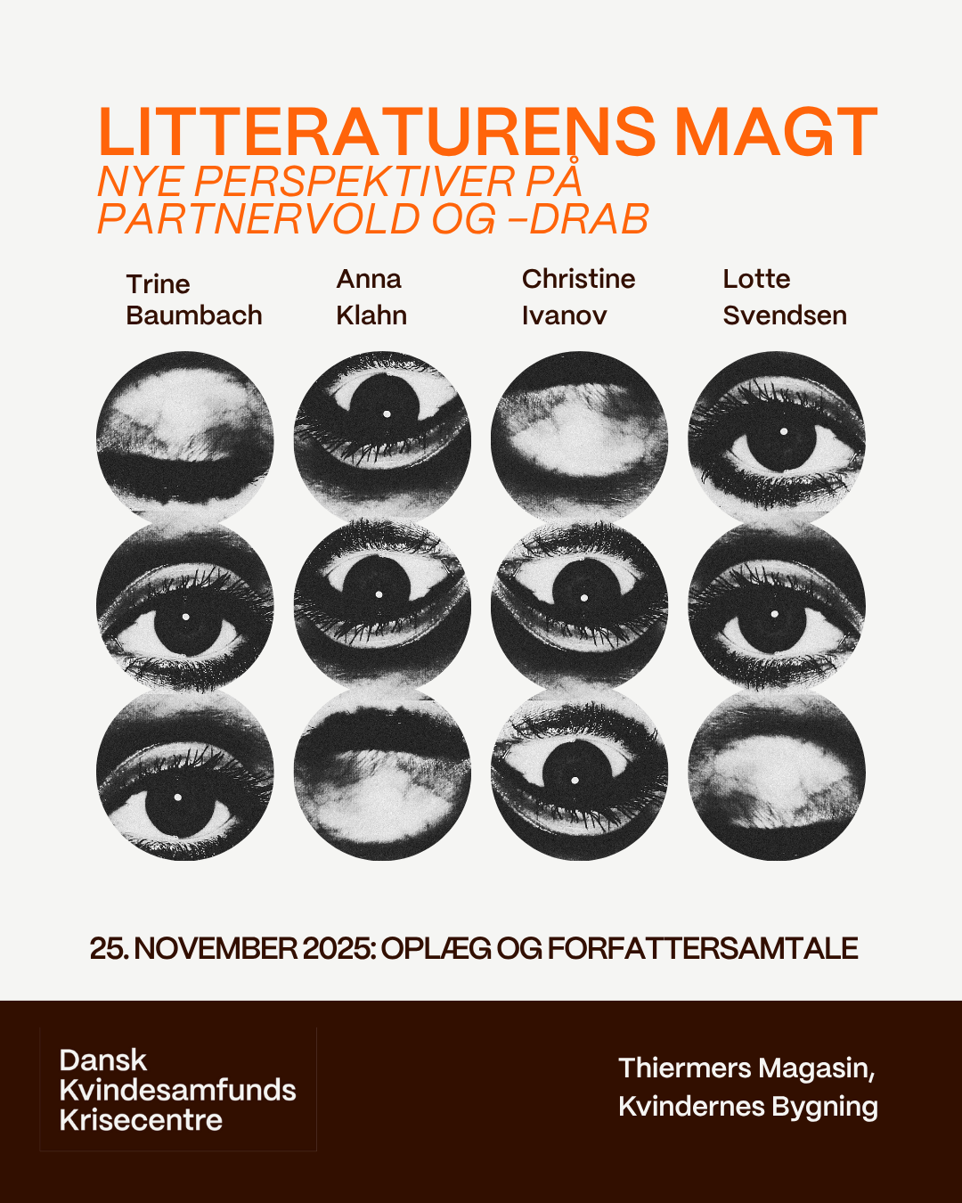 Litteratur er en vigtig del af vores samfund og kultur. Gennem ord og fortælling kan den synliggøre følelser, erfaringer, perspektiver og påvirke vores syn på verden. På den måde kan litteraturen være med til at skabe debat og bevidsthed om partnervold- og drab. Derfor vil vi denne eftermiddag stille skarpt på litteratur, der belyser voldens virkelighed.